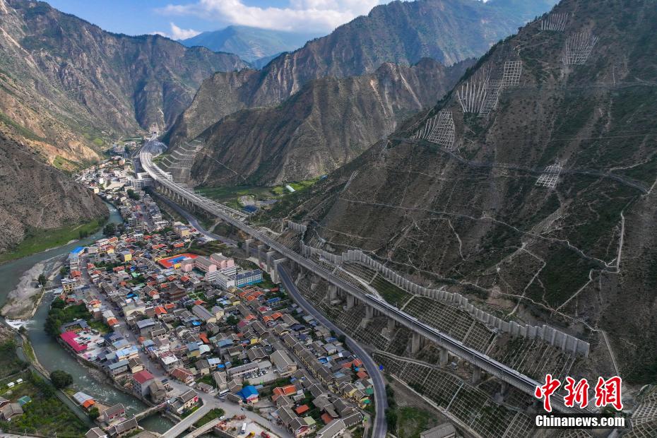 圖為川青鐵路鎮(zhèn)江關(guān)至黃勝關(guān)段松潘站全景。(無(wú)人機(jī)照片)中新社記者 劉忠俊 攝