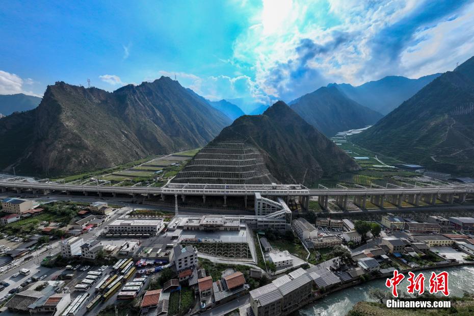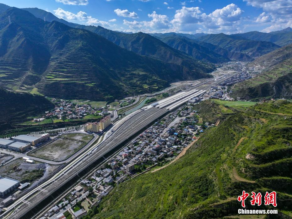 圖為川青鐵路鎮(zhèn)江關(guān)站全景。(無(wú)人機(jī)照片)中新社記者 劉忠俊 攝