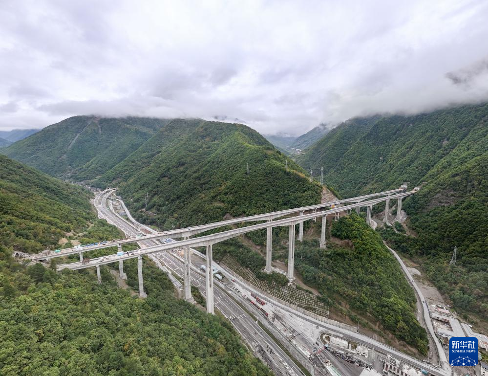 這是10月11日拍攝的正在建設(shè)中的九寨溝—綿陽高速公路(無人機(jī)照片)。九綿高速開通后,從成都至九寨溝縣的時(shí)間將從原來的8小時(shí)縮短至4小時(shí)。新華社記者 王曦 攝