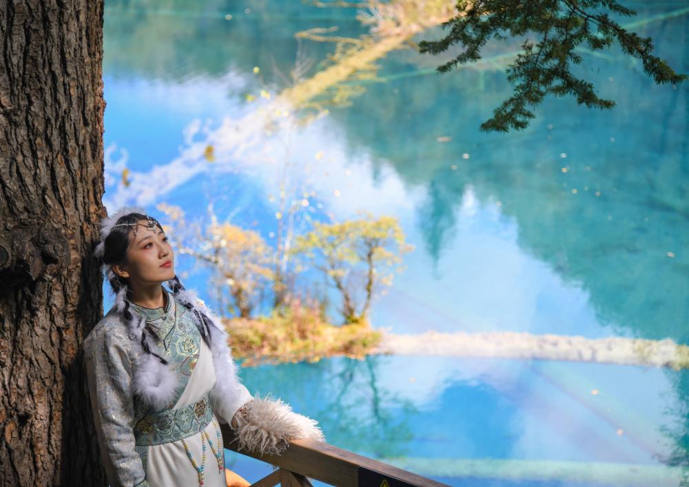 江蘇林女士的新婚蜜月之行便是來到九寨溝,她特意租了傳統(tǒng)藏族服飾、化上了特色妝容,站在五花海的棧道上,身后是碧藍湖水,身側是林影婆娑?!霸谶@么美的景色之下穿上民族服裝,我想拍出來的照片一定很美!”