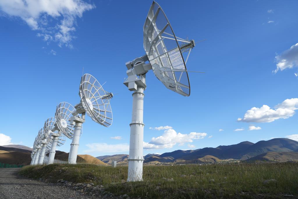 這是在圓環(huán)陣太陽(yáng)射電成像望遠(yuǎn)鏡拍攝的觀測(cè)運(yùn)行中的天線(xiàn)。新華社記者 薛晨 攝