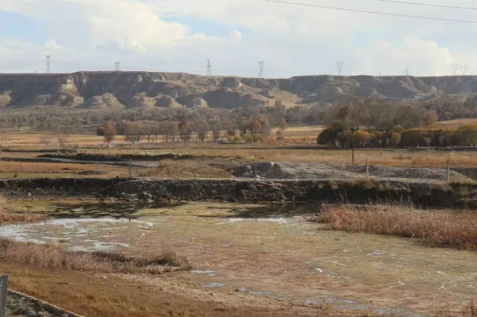 沿著中間的一條小路行走,只見左右兩邊都有鐵網(wǎng)攔著,綠草已經(jīng)有了淺淺的黃,半人高的蘆葦在微風(fēng)中搖曳,大大小小的水洼點(diǎn)綴在其間,陽光下像極了明亮的眼睛。