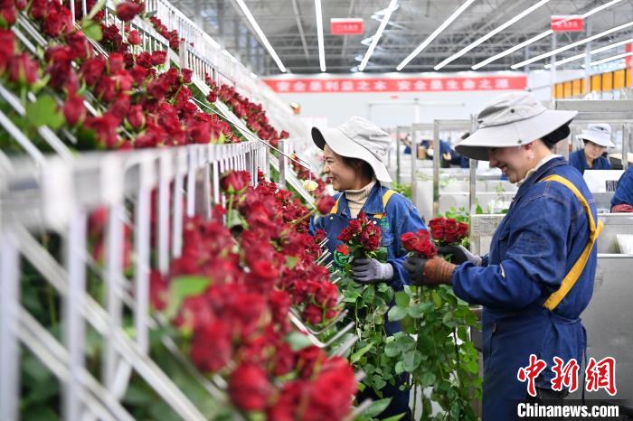 目前,當?shù)亟ǔ擅娣e20萬平方米高新智能化溫室,鮮花四季盛開。記者看到,棚頂紅色的全自動補光燈正在為玫瑰“延長光照時長”。精準控制營養(yǎng)液成分和濃度的智能化水肥一體化系統(tǒng)、自動化分選等高新設備投入,科技種植和品質上升,讓臨夏成為中國重要的優(yōu)質鮮切花生產(chǎn)基地,日產(chǎn)20萬枝鮮切花,海內(nèi)外訂單不斷。
