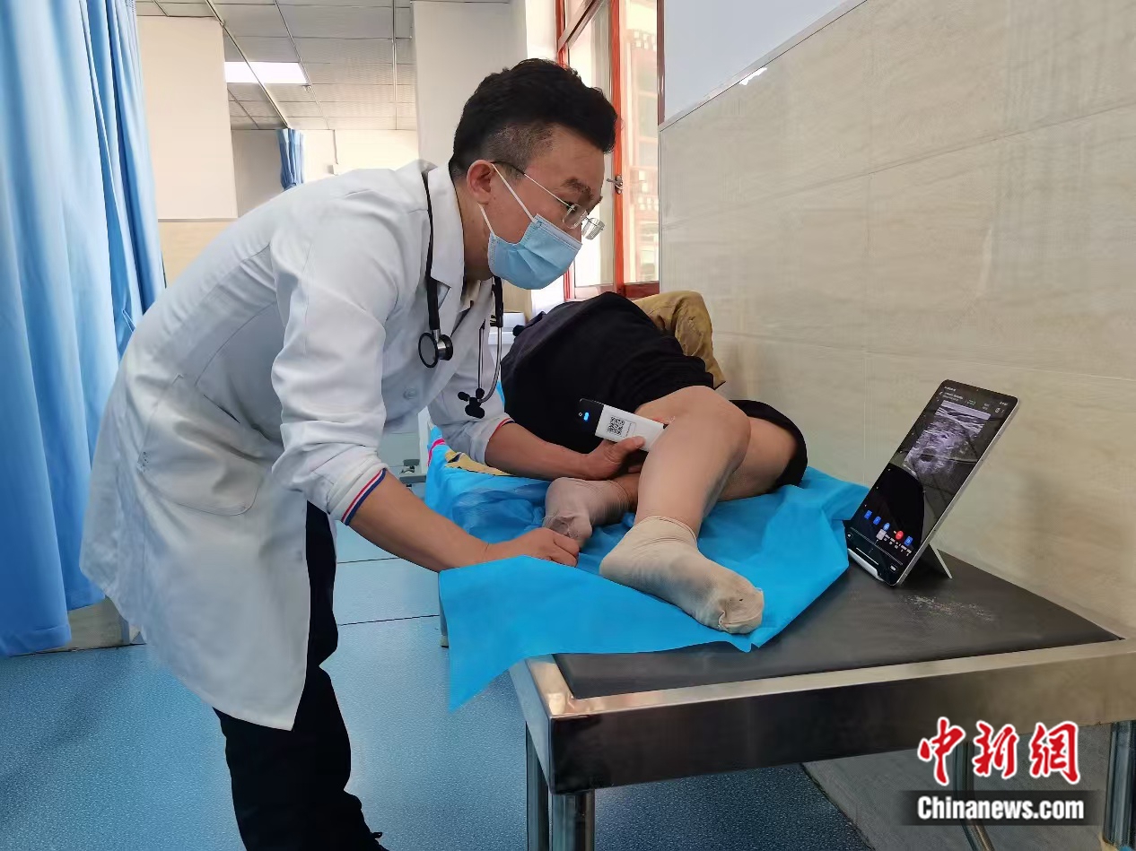 2024年7月,“同心·共鑄中國心”2024甘孜行活動(dòng)期間,清華大學(xué)第一附屬醫(yī)院副院長胡暢在甘孜白玉縣為當(dāng)?shù)孛癖娺M(jìn)行診療。 北京同心共鑄公益基金會(huì)供圖