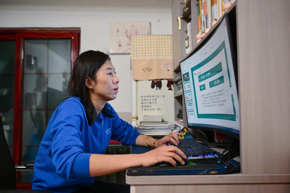3月5日,祁雅瓊在宿舍內(nèi)備課。新華社記者 張龍 攝