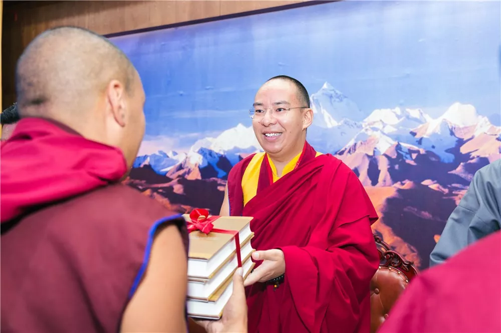 十一世班禪在致辭中指出,歷世班禪是藏傳佛教愛國愛教的一面旗幟。傳承和弘揚(yáng)歷世班禪大師愛國愛教思想,對于推動藏傳佛教再弘期更好地與中國特色社會主義相適應(yīng),推動藏傳佛教更好地為維護(hù)國家統(tǒng)一,促進(jìn)中華民族團(tuán)結(jié),維護(hù)社會和諧穩(wěn)定服務(wù),具有非常重要的作用?!稓v世班禪文集》歷史意義深遠(yuǎn)。以書刊為媒介符合時代潮流,能夠讓廣大的信教群眾,宗教界專家學(xué)者,特別是年輕一代更便捷,更系統(tǒng)學(xué)習(xí)歷世班禪愛國愛教思想的精髓。他希望藏傳佛教界人士,要以藏傳佛教歷代愛國愛教先賢大德為榜樣,感恩黨,感恩祖國,努力聞思顯密精要,為眾生帶來利樂。