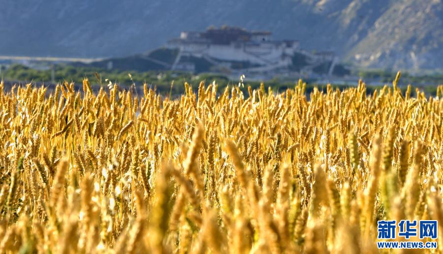 拉薩布達拉宮對面的金色麥田(2009年8月21日攝)。新華社記者 普布扎西 攝