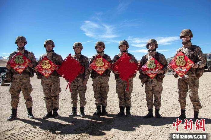 執(zhí)勤點(diǎn)上的官兵們,用“?!弊帧⒅袊?guó)結(jié)將保溫方艙精心點(diǎn)綴裝飾,把祝福和期許默默留在心間?!耙患也粓A,萬(wàn)家團(tuán)圓。”馬雪建是官兵中唯一的零零后戰(zhàn)士,他表示:“一身戎裝接過(guò)送來(lái)的‘福’字,便是扛下了肩上的使命與責(zé)任,戰(zhàn)位上的新年就是邊關(guān)軍人的守望。”