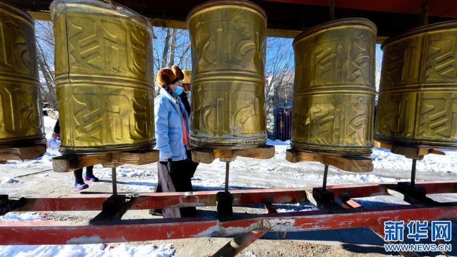 2月12日,在西藏自治區(qū)山南市乃東區(qū)澤當(dāng)鎮(zhèn),格央(左)和家人一起,在藏歷新年第一天轉(zhuǎn)山祈福。新華社記者 劉金海 攝