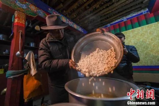據(jù)悉,藏歷新年初一,西藏拉薩民眾也有“拜年”“串門”的習(xí)慣,家里的主人端著“切瑪”,拿著青稞酒迎接,客人們用手指抓一點(diǎn)青稞拋向天空祈福,再抓些糌粑送入口中,隨后開始“三口一杯”的飲酒儀式,一聲聲“羅薩扎西德勒”,相互致以新年的問候。