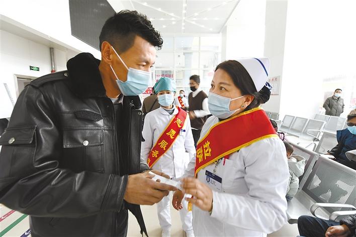 圖為拉薩市人民醫(yī)院醫(yī)護(hù)人員為前來(lái)就診的患者服務(wù)