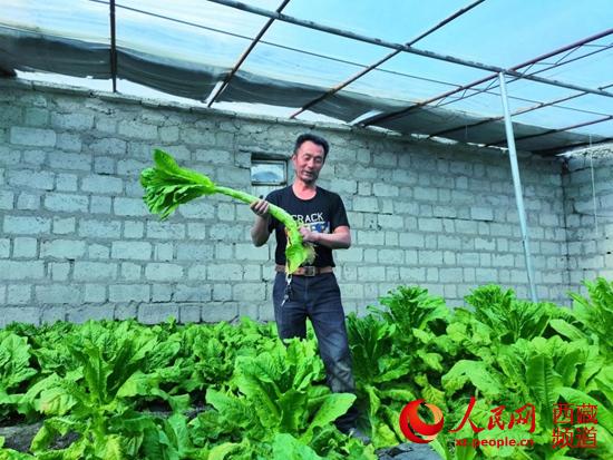 就在他們家大棚門口,記者看到洛桑頓珠正忙著裝運(yùn),后備廂塞得滿滿當(dāng)當(dāng)?!八麄?nèi)撕?,我們家牛吃的都是新鮮菜?!甭迳nD珠操著濃重的鄉(xiāng)音說。