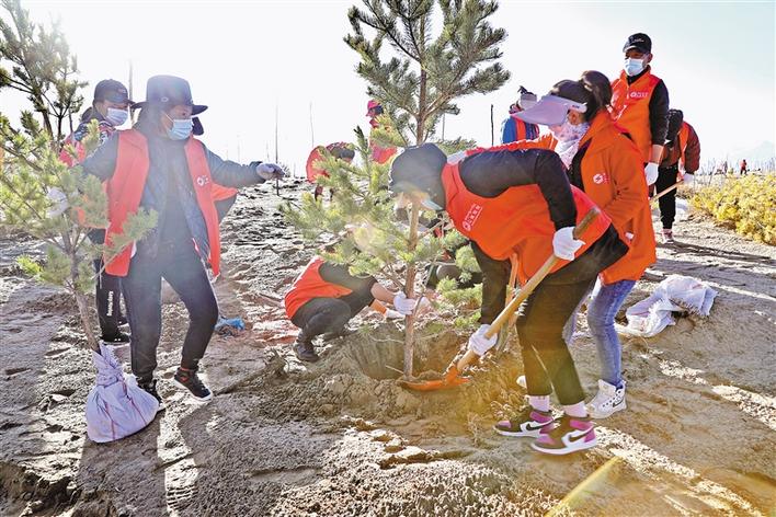 圖為山南市旅游投資公司的員工正在植樹(shù)。