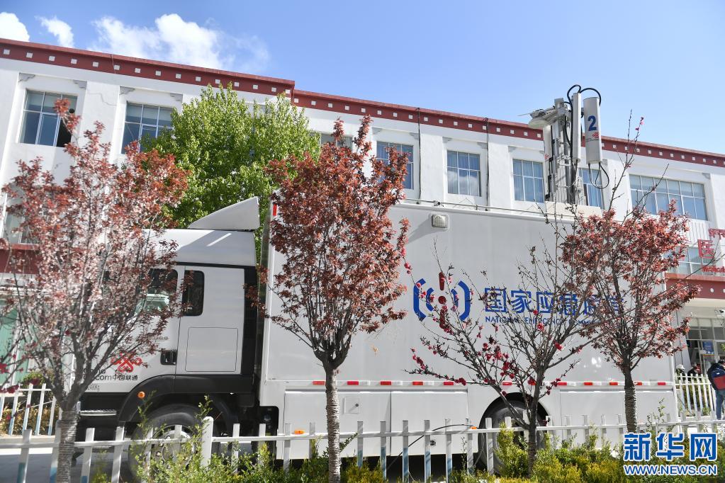 這是4月19日在拉薩市人民醫(yī)院拍攝的保障遠程骨科手術順利進行的通訊保障車輛。新華社記者 孫瑞博 攝