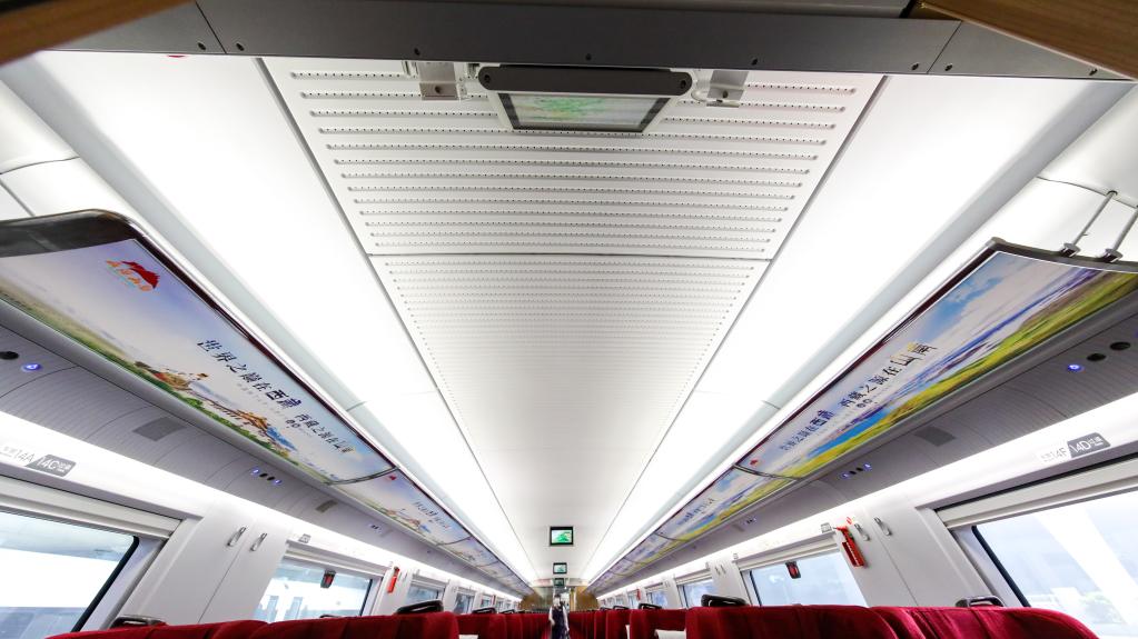 從站臺(tái)開始,醒目的車身外彩貼盡入乘客眼中,由此,山南文化旅游的元素就將伴隨乘客的整段旅程。全列車廂,雍布拉康、昌珠古寺、桑耶古鎮(zhèn)、羊卓雍措等旅游目的地與“藏美之行 源起山南”“世界之巔在西藏 西藏之源在山南”等旅游口號(hào)互相輝映,將山南歷史文化與盛景濃縮其中,呈現(xiàn)在旅客面前,讓大家近距離感受山南迷人的美景和悠遠(yuǎn)的歷史。