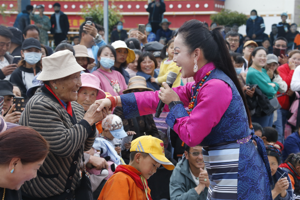 在雪域高原,德西美朵的歌聲響遍每一個角落。1995年,36歲的德西美朵第一次下鄉(xiāng),“當(dāng)時一個老爺爺對我說平常只能通過其他渠道聽見你們的歌聲,現(xiàn)在能見到真人演唱,真是太好了。”從此,德西美朵堅定了要到群眾中唱歌的想法,每年的“三下鄉(xiāng)”和各類慰問活動,她從未缺席。