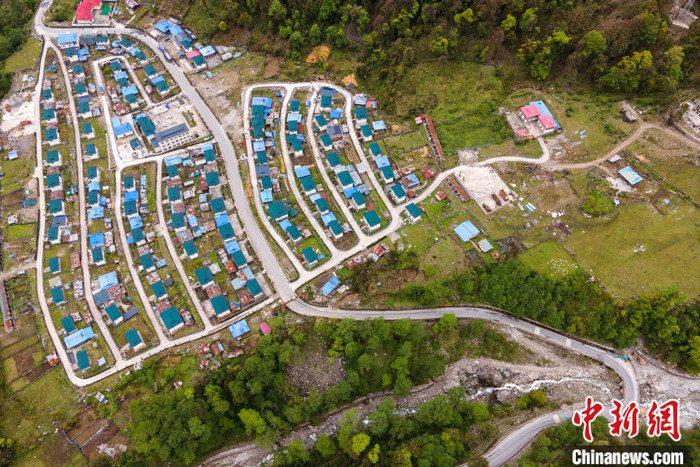 圖為5月16日,西藏墨脫公路上的達(dá)木珞巴民族鄉(xiāng)貢日村景象,該村此前為舊墨脫公路物資轉(zhuǎn)運(yùn)點(diǎn),被稱為“80K”。(無人機(jī)照片) 中新社記者 江飛波 攝