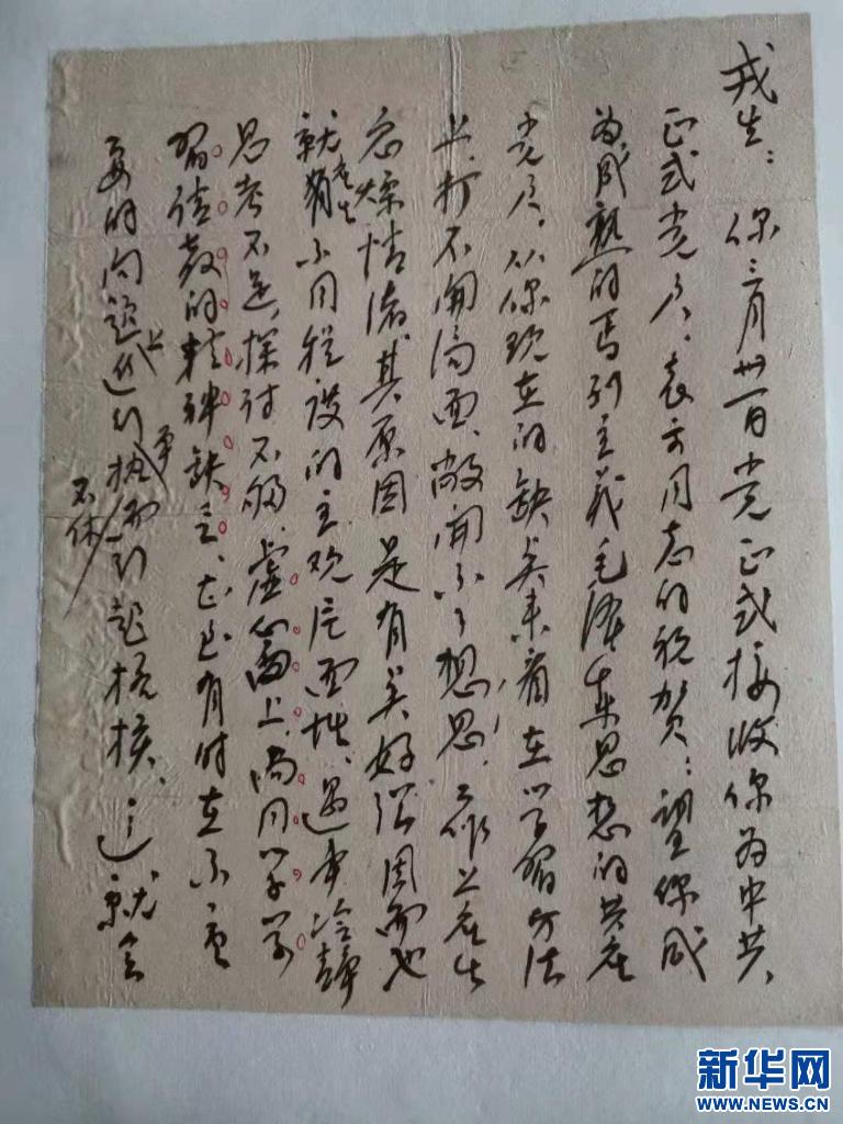 “戎生,你這幾年來,學習進步一定很好。我們天天在這里希望你進步……我們身體很好,工作也很順利,不要掛念。祝你和你弟弟身體好,并祝進步!”