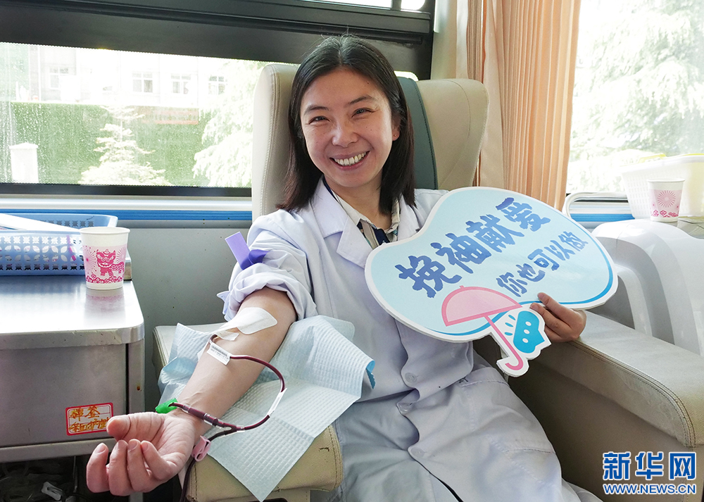 5月27日,來(lái)自北京協(xié)和醫(yī)院的援藏專(zhuān)家楊筱在獻(xiàn)血。(新華網(wǎng) 旦增努布攝)