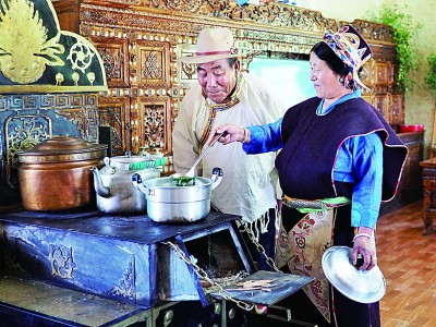 推開格桑曲珍家的院門,迎面映入眼簾的是坐北朝南、鑲嵌六扇大落地窗的藏式二層紅頂小樓,收拾得干凈整潔的院落透露出主人一家的勤勞。院子西邊的獨立衛(wèi)生間里,白底黃花的瓷磚鋪滿地面和墻面,太陽能熱水器、上下水衛(wèi)浴設(shè)施一應(yīng)俱全。院子?xùn)|南角上占地十余平方米的廚房里,配齊了現(xiàn)代化的抽油煙機和電子灶具。