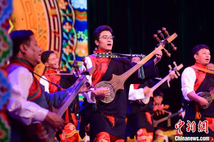 圖為西藏大學(xué)藝術(shù)學(xué)院音樂(lè)系帶來(lái)的扎念彈唱《普伊桑林貢巴》。 貢嘎來(lái)松 攝