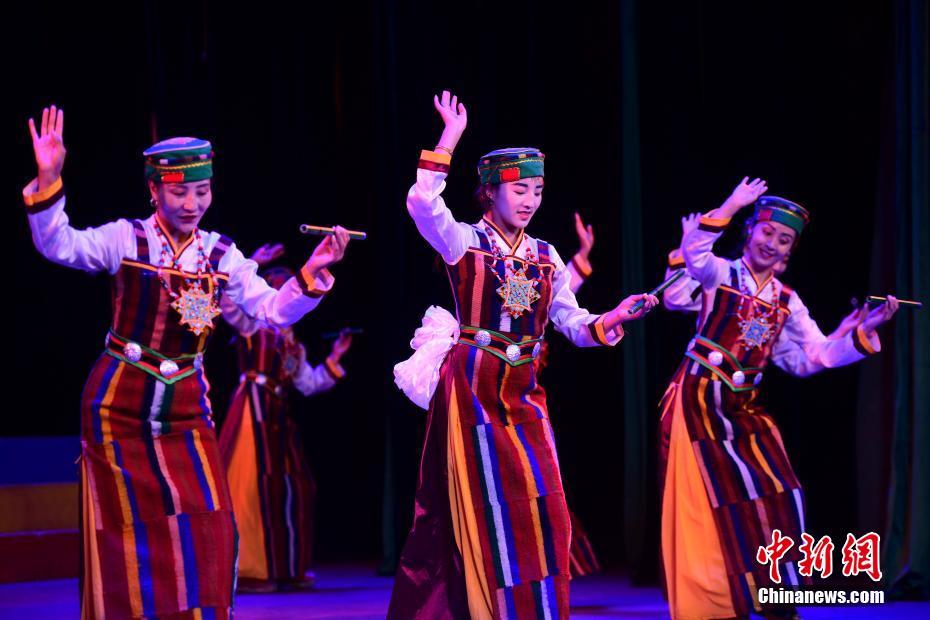 6月12日,2021年“文化和自然遺產(chǎn)日”西藏非遺展演展示系列活動在拉薩舉行?;顒蝇F(xiàn)場融入了文藝演出、非遺展演、非遺產(chǎn)品展銷等內(nèi)容,市民游客可親身體驗非遺產(chǎn)品的制作過程。圖為在西藏自治區(qū)群眾藝術(shù)館演出的扎念彈唱《普伊桑林貢巴》。 中新社記者 貢嘎來松 攝