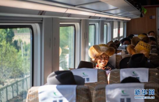來(lái)自山南市貢嘎縣杰德秀鎮(zhèn)杰德秀村的巴珠,今年68歲,他一會(huì)兒從車(chē)窗眼望高山峽谷,一會(huì)兒摸摸車(chē)內(nèi)現(xiàn)代化設(shè)施,這是他頭一次坐火車(chē)?!皬?fù)興號(hào)和牛車(chē)比起來(lái),像是在飛翔。”他笑著說(shuō)。