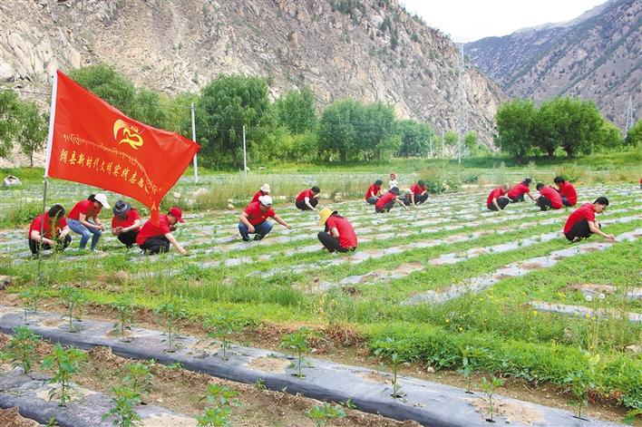 圖為西藏自治區(qū)林芝市朗縣新時代文明實踐志愿服務(wù)隊來到洞嘎鎮(zhèn)達木村,幫助當?shù)卮迕窀赊r(nóng)活。