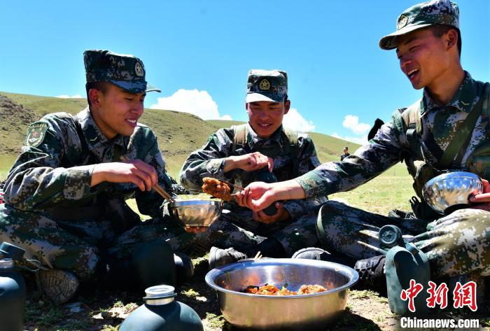 圖為西藏軍區(qū)某合成旅野外拉練官兵野餐現(xiàn)場。萬玲 攝