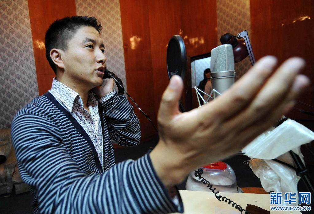 西藏電視臺(tái)藏語(yǔ)配音員在給電視劇配音(2009年9月29日)。新華社記者 覺果 攝