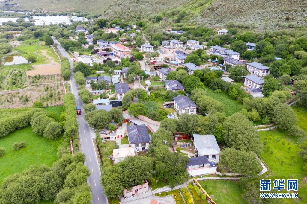這是6月19日拍攝的林芝市米林縣境內(nèi)的瓊林村(無(wú)人機(jī)照片)。新華社記者 普布扎西 攝