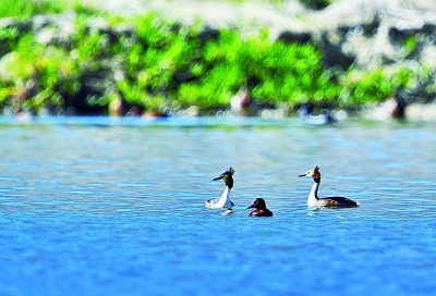 幾只水鳥在西藏拉薩的拉魯濕地嬉戲。新華社發(fā)