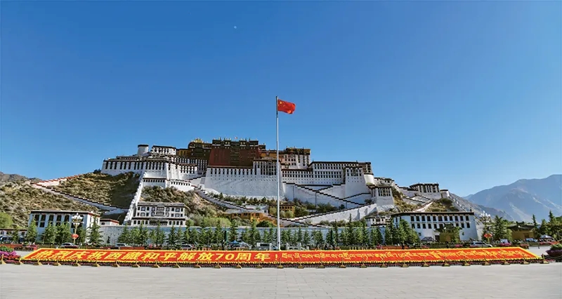 1951年5月23日,《中央人民政府和西藏地方政府關(guān)于和平解放西藏辦法的協(xié)議》的簽訂,宣告西藏和平解放。2021年是西藏和平解放70周年。圖為2021年5月23日的布達拉宮廣場。新華社記者 晉美多吉/攝