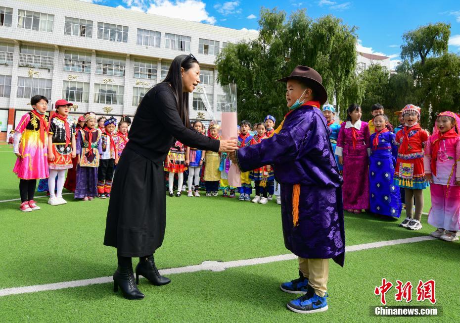 9月10日是第37個(gè)教師節(jié),西藏拉薩市第一小學(xué)舉行了以“譜團(tuán)結(jié)新篇 育桃李芬芳 感教師恩情”為主題的慶?;顒?dòng)。學(xué)生以敬禮、獻(xiàn)花、擁抱等方式,表達(dá)對(duì)老師的感恩之情。中新社記者 貢嘎來(lái)松 攝