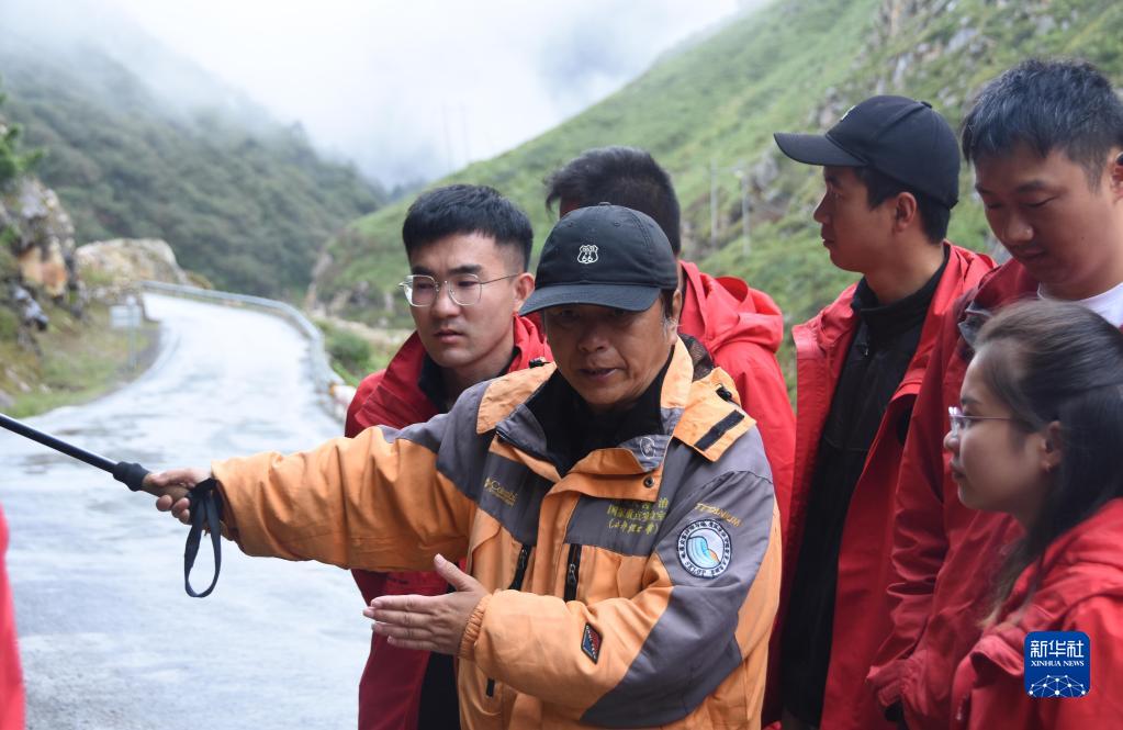 9月7日,在西藏日喀則市區(qū)域內(nèi)的喜馬拉雅山脈,中科院地理科學(xué)與資源研究所客座教授李渝生和年輕的科考隊員分析問題。新華社記者 杜剛 攝