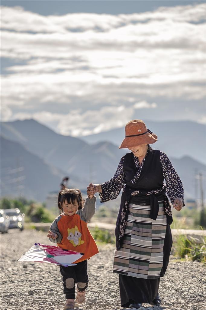 每年秋日,人們聚集在拉薩河畔,享受斗風(fēng)箏帶來的各種樂趣。除了放風(fēng)箏外,撿風(fēng)箏也是很開心的事,被割斷線的風(fēng)箏,誰撿到就歸誰。因此,一些孩子看到天上飄落下來的風(fēng)箏便趕緊跑過去撿,有時大人也會參與其中,好不熱鬧,直至傍晚時分人們才依依不舍地漸漸散去。