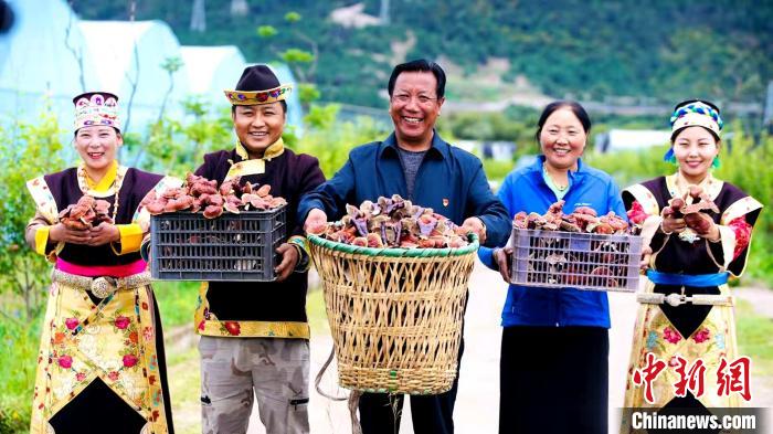 圖為米林縣農(nóng)牧民手捧靈芝展示豐收的喜悅。平措旺青供圖