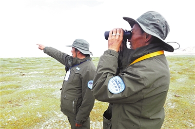 巡護(hù)過(guò)程中,他們不僅撿拾垃圾,還時(shí)不時(shí)用望遠(yuǎn)鏡察看周邊是否有動(dòng)物死亡、濕地草地是否有被破壞等現(xiàn)象。一旦發(fā)現(xiàn)問(wèn)題,需及時(shí)上報(bào)相關(guān)部門(mén)。