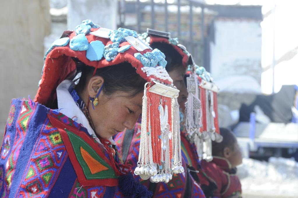 圖為卡熱組藏族婦女穿戴的宣舞服飾。(楚魯松杰鄉(xiāng)政府供圖)