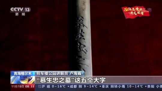 青海省格爾木市將軍樓公園講解員 盧海霞:慕生忠將軍在修建青藏公路的同時,他將自己的生死置之度外,所以在自己的鐵鍬上刻了慕生忠之墓這5個大字。他當(dāng)時在刻這個字的時候,他就說路修到哪里,如果我犧牲了,那么就把我埋在哪里,它就是我的墓碑。