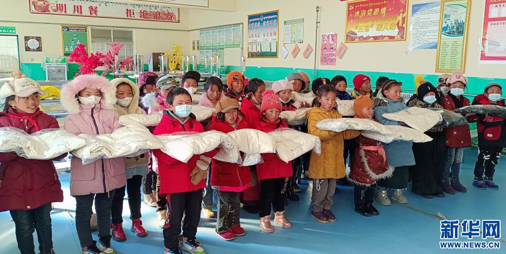 “孩子們,排好隊(duì),快到食堂去領(lǐng)羽絨服?!?央吉措姆老師高興地對(duì)一年級(jí)的學(xué)生說(shuō)道。待孩子們來(lái)到食堂,這里已是熱鬧一片??吹綊熘皩W(xué)史力行、愛聚藏鄉(xiāng)、童心向黨”愛心羽絨服發(fā)放儀式的橫幅,孩子們才恍然大悟,原來(lái)是援藏的叔叔給他們送新羽絨服來(lái)了。
