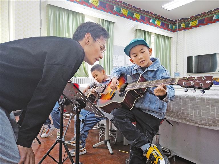 每到周末和寒假,音樂室里飄蕩著悠揚的扎念、二胡、吉他和揚琴聲;舞蹈空間、美術空間、多功能教室內,孩子們跳舞、畫畫、練藏文書法、學習英語;活動場上,孩子們踢足球、打籃球?!霸诨顒又行睦?,不僅能跟大家一起玩,還能學到不少東西,我很喜歡在這里學習?!睂W生宗尕吉高興地對記者說。活動中心的各種特色活動,充分滿足了孩子的興趣愛好,讓他們能夠張揚個性、快樂成長、培養(yǎng)特長、多元發(fā)展。