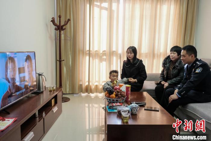 圖為戍邊民警羅永超和家人一起看電視?!〗w波 攝