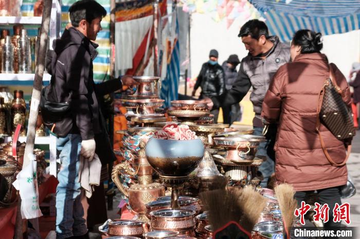以農(nóng)耕為主的日喀則有“西藏糧倉(cāng)”之稱,為不耽誤農(nóng)事,包括日喀則在內(nèi)的農(nóng)耕區(qū)習(xí)慣提前一個(gè)月,在藏歷十二月慶祝新年,被稱為日喀則農(nóng)事新年。1月31日是春節(jié)除夕,恰逢日喀則農(nóng)事新年的“古突夜”,小新在日喀則年貨市場(chǎng)看到,該市場(chǎng)內(nèi)的“卡塞”、青稞苗、“羅薩美朵”、牦牛肉干、酥油、糖果等各類藏式年貨琳瑯滿目,大家也抓緊時(shí)間置辦,為晚上熱熱鬧鬧過“古突”做最后的準(zhǔn)備。