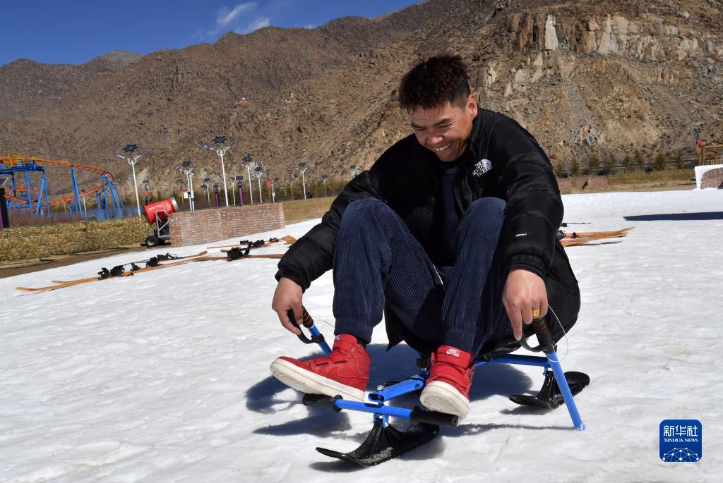 近日,西藏拉薩郊區(qū)一游樂場開設(shè)冰雪運(yùn)動體驗場,讓更多人感受冰雪的樂趣。