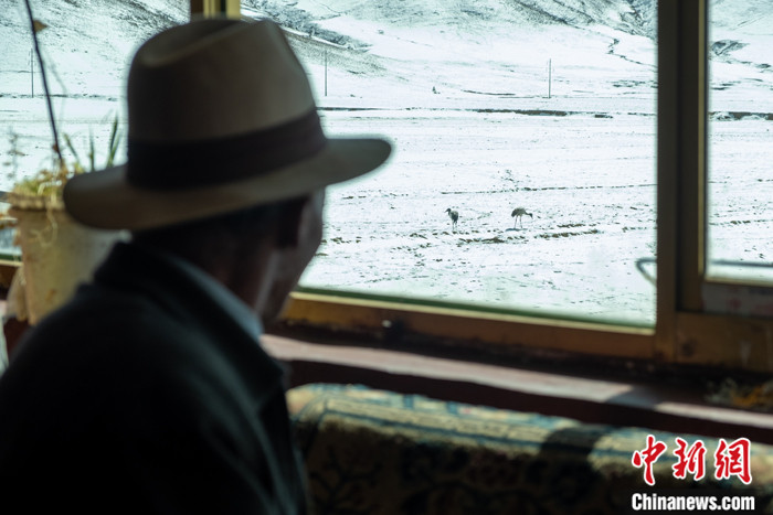 圖為2月23日,旦增在林周縣虎頭山水庫(kù)附近為黑頸鶴巡護(hù),今年,該水庫(kù)周邊有上千只黑頸鶴在此越冬。中新社記者 江飛波 攝