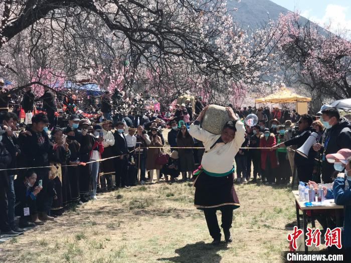 資料圖為林芝桃花旅游文化節(jié)期間舉行的“抱石頭”傳統(tǒng)體育比賽。冉文娟 攝