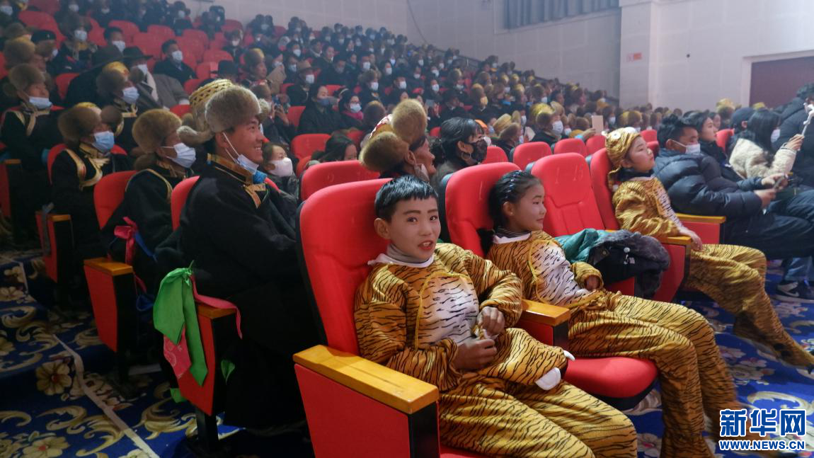 扎西曲登社區(qū)首屆藏歷新年晚會(huì)上,社區(qū)群眾在觀(guān)看節(jié)目(2月26日攝)。新華網(wǎng) 殷小燕攝