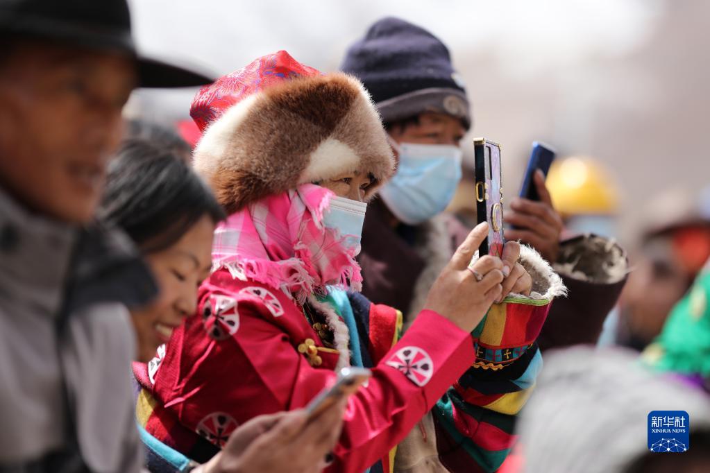 搬遷牧民用智能手機(jī)拍攝鄉(xiāng)親們表演的節(jié)目(2月28日攝)。收入高了,信號好了,告別封閉的游牧生活,智能手機(jī)成為搬遷牧民們?nèi)耸忠徊康摹皹?biāo)配”。新華社記者 姜帆 攝