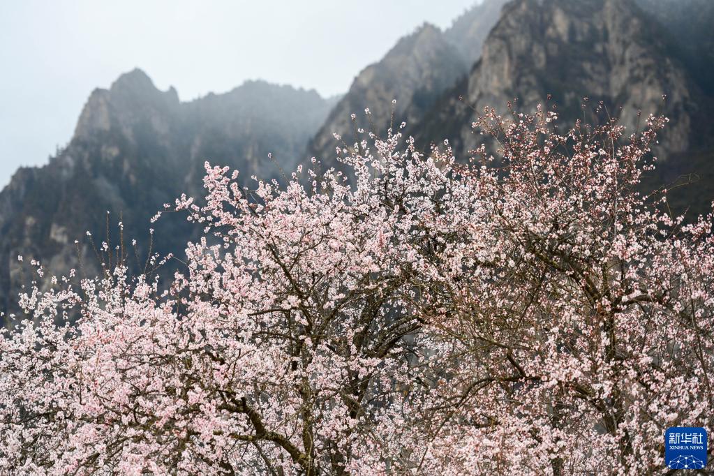 這是在那曲市嘉黎縣尼屋鄉(xiāng)拍攝的桃花(3月30日攝)。新華社記者 周荻瀟 攝